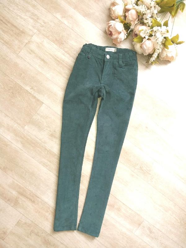Стильні вельветові джинси. За ним йдуть листочки по всьому штаникам, як би вибиті малюночки. Дуже красиво. Довжина 82 см, Внутрішній шов 62 см Пояс 29-33 см з боків є утяжка Стегна 39 см добре тягнуться Посадка 19/25 см Ширина штанини внизу 12 см