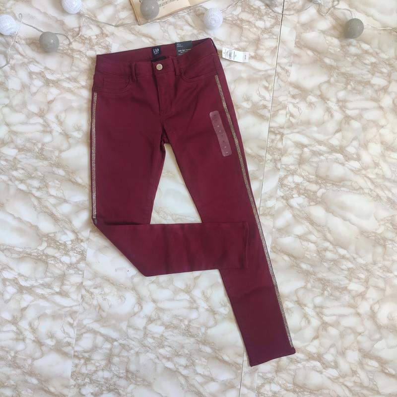 Джегинсы з лампасами GAP denim (дуже хороший стрейч). Розмір 12/152. ПІТ 35 див Довжина по боковому шву 87 див. Довжина кроку 67 див.