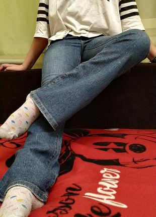 круті джинси від відомого бренду, кльош з блиском (не відпадає)фото не передає повністю колір,на вік 11-13років, є утяжка