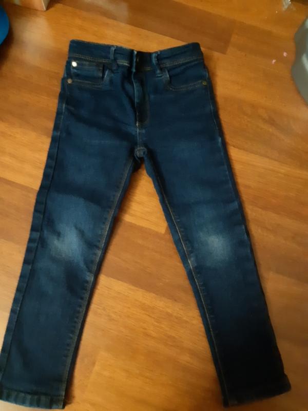 Джинси для дівчинки, стан ідеальний, колір темно синій, з середини ширина регулюється гудзиками на резинці , а ззаду на резинці. Пересилка новою або укрпоштою