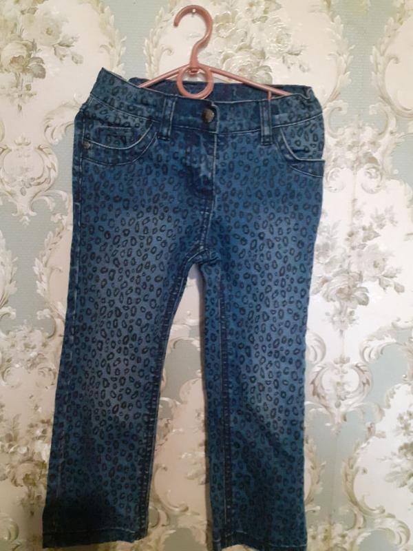 Джинсики темно-синего цвета в принт под леопард в отличном состоянии для девочки 104-110 см)