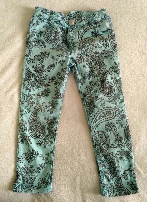 Яскраві красиві джинси для вашої принцеси. Стан ідеальне, в складі стрейч, тягнуться. Ззаду на попі є резиночка,що дуже зручно. Заміри на фото.