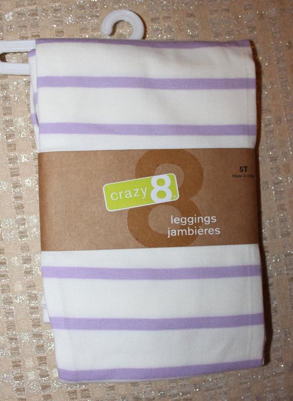 Нові лосини у фіолетову смужку дівчинці 5 років від Сrazy8, Сша. Склад: 95% Бавовна+5%еластан. Дуже хороша якість, добре носяться, не розтягуються. Привезені з США. Заміри: довжина 63 см, ПОТ 24,5см, крокова довжина 47см.