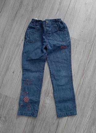 джинси на дівчинку на 4 - 5 років, на зріст 110 - 116 см, з вишивкою, в поясі є стяжка, у відмінному стані.