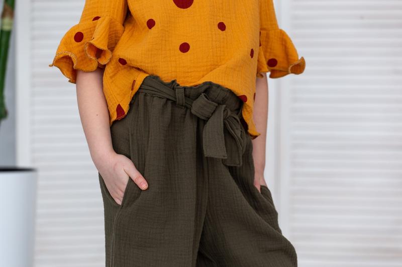 Натуральні літні брюки для дівчинки. Ручна робота. Є два розміру 116-122 і 122-128