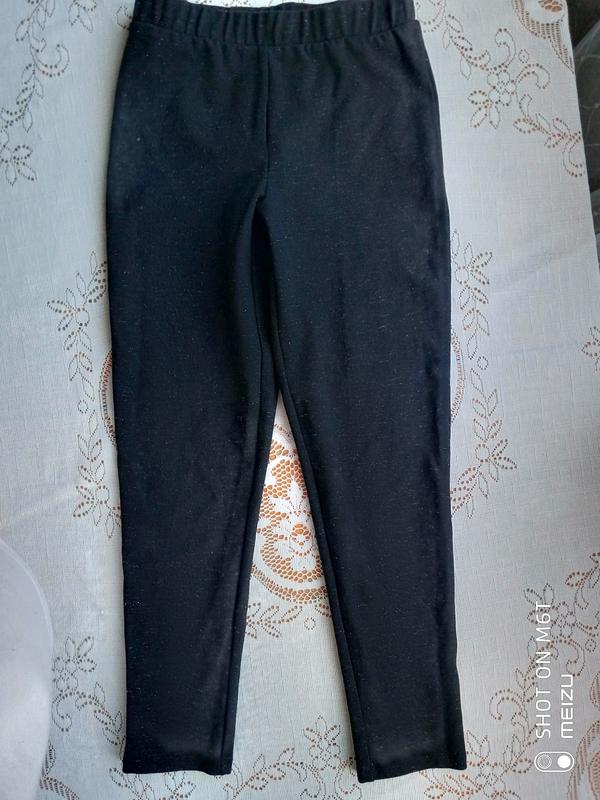 Чорні лосини на дівчинку з люрексом. На 8-9 років. Заміри довжина-75.5 см, довжина кроку 56.5 см, ширина пояса 27 див.