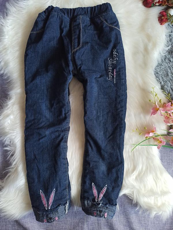 теплі штани джинси на дівчинку 5-6 років довжина 73см крок 53см пояс 30см стегна 43см стан ідеал
