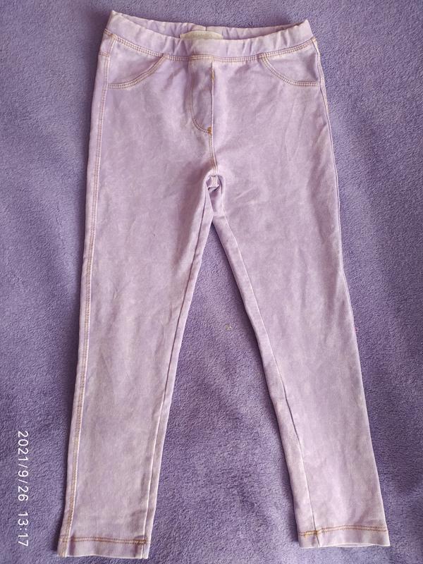 плотні джегінси,всюди цілі,не покошлачені.Спереду на штатні є ледь заміна маленька пляма,яку в носці навіть не видно,фото плями та заміри при потребі надам.По бірці на 122 см,альо залежить яка дитина