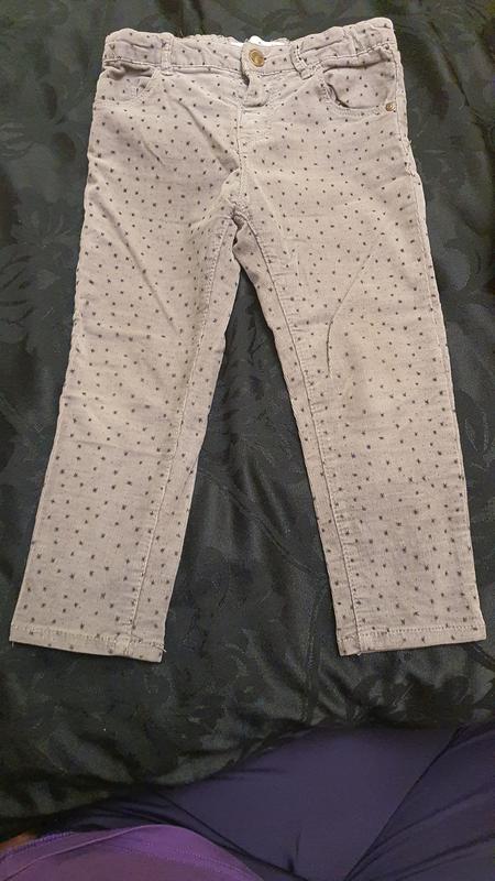 Джинси сірого кольору з чорними снежынками. Дрібний веливет. На 2-3 роки. (98см) довжина -48 см пояс - 50 див.