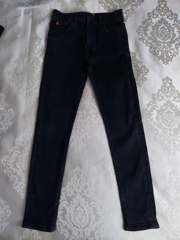 Стильні скіні чорного кольору з фабричними потертостями. Можна в школу. Стан нових. Трохи тягнутися. Заміри на фото.