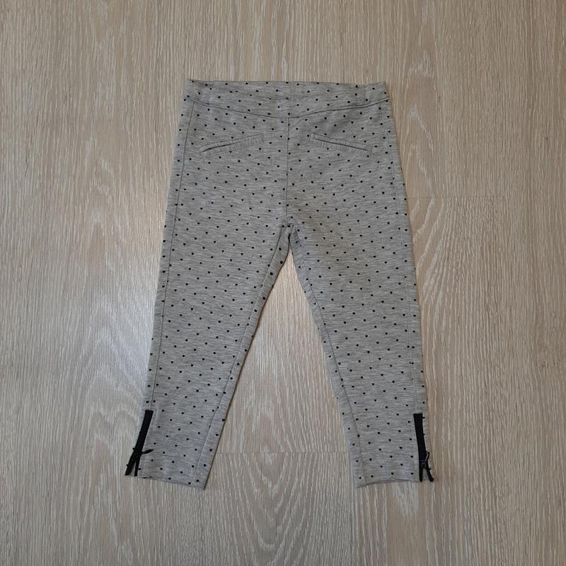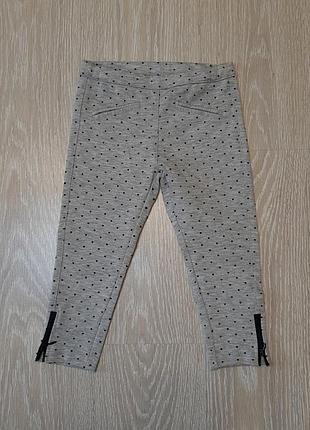 Лосіни/легінси сірого кольору з принтом сердечка, внизу на штанині замочок розшпиляється ✔24-30місяці, зріст 92см півобхват в поясі 23,5 см тягнеться, довжина зовнішній шов 46,5 см, внутрішній шав 31см 💬77% поліестер, 20% віскоза, 3% еластан 🏷fagottino/ovs