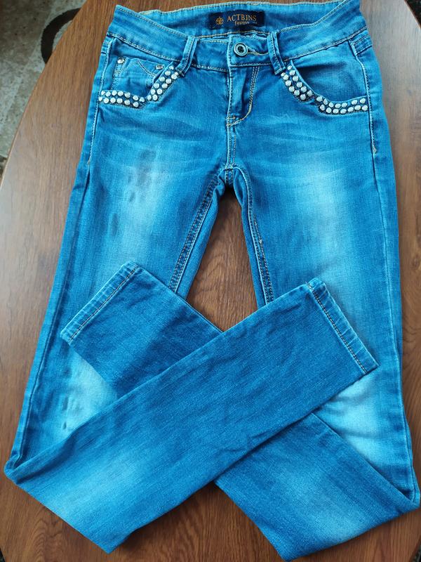 Фірмові джинси. Розмір вказаний 26. Довжина по боковому шву 100см, крок 82см, ПОТ (талія) 33см, ще тягнеться, ПОБІДИ (стегна) 41см, ще тягнеться.. Тканина тягнеться трохи. Стан хороший, але на одному коліні є ледве помітна пляма, може відіпрається, в живу майже не видно. Міняли гудзик.