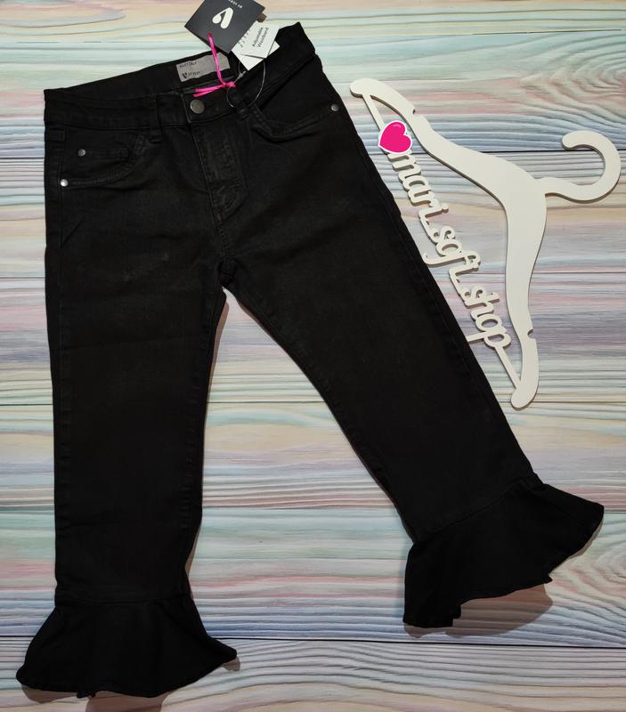 Чорні джинсові капрі / бриджі від англійського бренду V By Very у розмірі 11 років (с3). Внизу штанин волани. Тканина середньої щільності, тягнеться. Утяжка на поясі. Стильні та класні. 80% бавовна, 19% поліестер, 1% еластан. Заміри: довжина 67, крок 48, пояс 31,5, стегна 40. При покупці трьох товарів - укрпошта у подарунок!