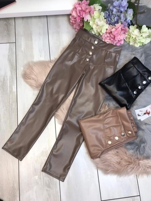 Лосинки з еко-шкіри прикрашені выстрочкой і кнопками , в поясі резинка , ціна 430грн довжина/крок/пояс 134-77\56\26 140-82/60/27 146р-86/63/29 152-90/66/30 158р-93/68/31