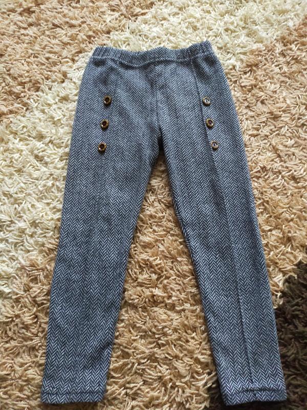 Трикотажні штанці-лосіни на дівчинку 5-6 років, в гарному стані. Довжина по зовнішньому шву 63 см, по внутрішньому 44 см, пояс гумка 26 см, тягнеться до 33 см, стегна 35 див. Виробник Турція.