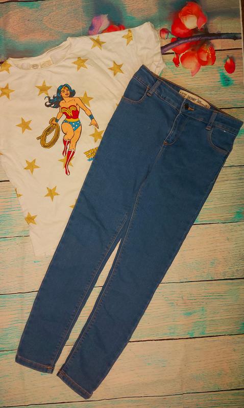 Скінні у відмінному стані. Без дефектів. Пояс на утяжках. На 9-10років ріст 140см ПІТ 32см Побіди 35см Крок 60см Довжина 83см 👒👗🩱Підписуйтесь на мій магазин що б бути в курсі обновок. У мене багато брендового дитячого одягу.Оновлення щотижня.
