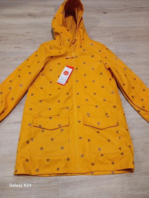 Продам совершенно новую весеннюю курточку-дождевик.Дождик ярко горчичного кольра в золотой горошек, очень стильный и лаконичный, с капюшоном, найдет на утепленной подкладке, качественная фурнитура, имеет два вместительных кармана, и не имеет противня на резиночке, в концелки при подбородке есть защита чтобы не прищемить ребенку кожу.Размер на 128 р, будет на 6-8 лет.Замеры: длина изделия-62 см,ширина-44 см, длина рукава от плеча-45 см.