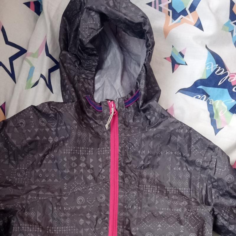 отличный дождевик для девочки 8 лет. Резинка на капюшоне и рукавах. Сзади немного длиннее. Не занимает много места