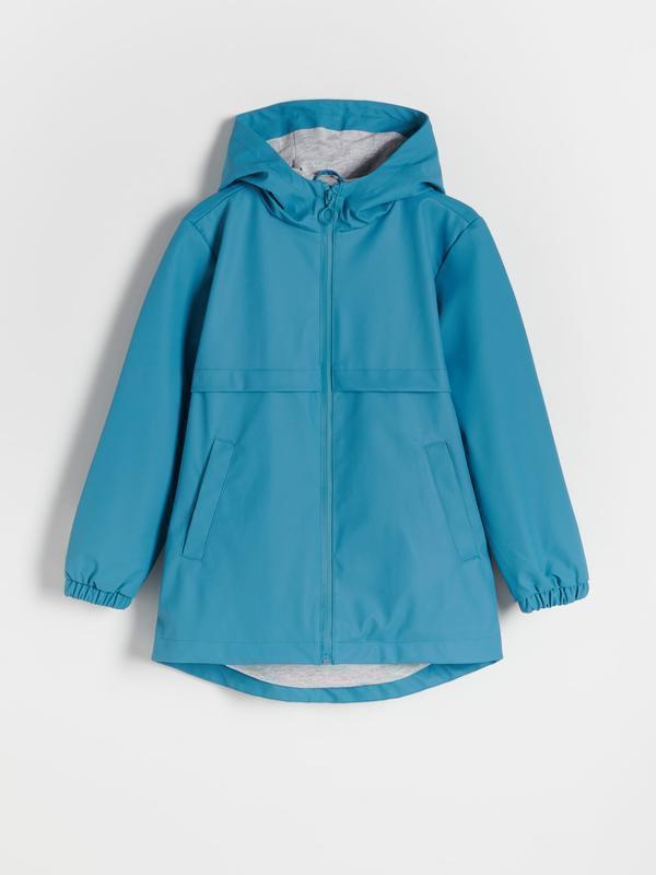 Утеплене пальто куртка дощовик Reserved 128, 134, 140 великий капюшон з коміром-стійкою застібка на блискавці злегка опущена лінія плечей дві кишені спереду асиметричний низ надрукований напис склад основної тканини: 100% ПОЛІЕСТЕР Склад_підклад тканина 1: 100% ПОЛІЕСТЕР Склад_підклад тканина 2: 95% БАВОВНА, 5% ВІСКОЗА