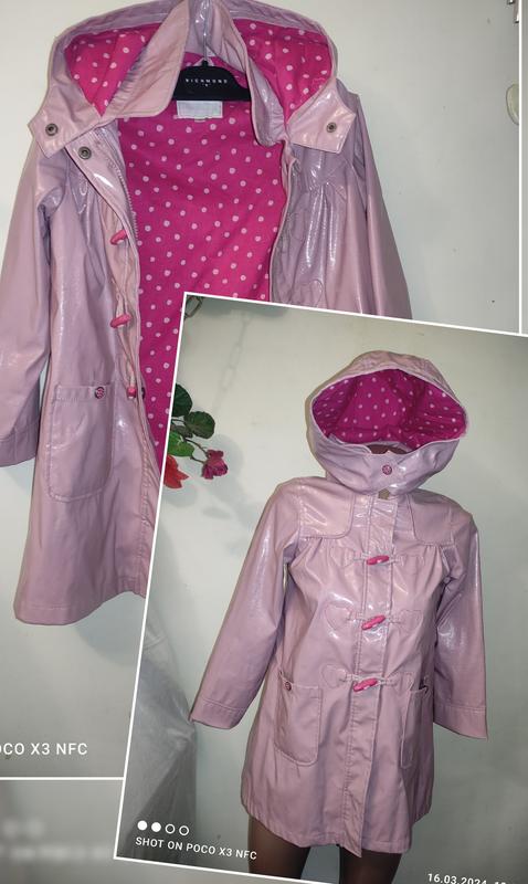 б/у, в идеальном состоянии ‼️ нюанс, на одном кармашке оторвана кнопка, на фото видно верх искусственный лак, розовый подкладка хлопок малиновая замеры плечи 31 пог 43 длина 67 плечо 7, рукав 48