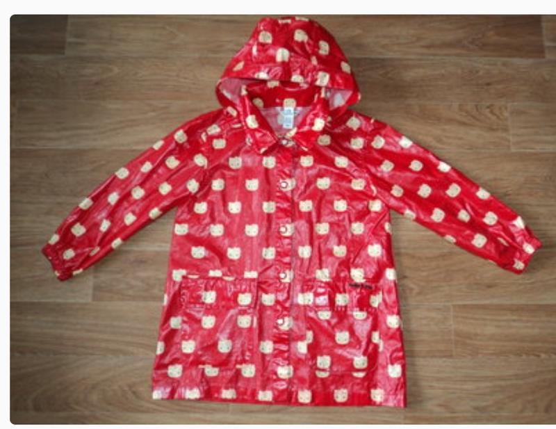 Куртка дождевик Hello Kitty 5-7 лет в отличном состоянии.Отличная куртка на дождь и ветренную погоду. Курточка на хлопчатобумажной основе. Абсолютно не промакаемая.Длина 57см, ширина полу объем 43 см, длина рукава от плечевого шва 40см, плечо 10, 5 см.