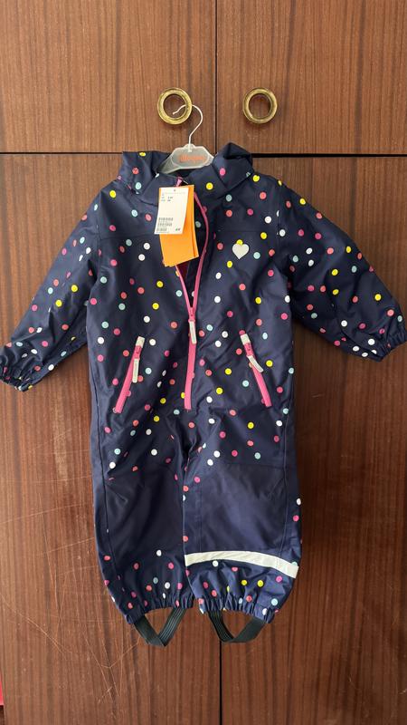 Новий комбінезон H&M , розмір 2/3 , ріст 98 см Опис із сайту: ** Комбінезон з вітрозахисної, водонепроникної, дихаючої функціональної тканини із закритими швами. Знімний капюшон, блискавка спереду з захисним підборіддям, передні кишені на блискавці. Еластичність на задній частині талії та еластичні манжети та подоли. Підкріплені на спині та на ногах і посилені еластичні ремінці для стоп. Світовідображаючі деталі. Водовідштовхувальне покриття без фторуглеводнів*** Всередині флісу немає, верхня тканина і підкладка. Можна носити як дощовик і як осінній/весняний комбінезон, піддівати фліски