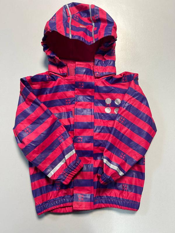 Дождевик Lego на 2 года , состояние хорошее. на правом плече есть незначительные трещины матерьяла.Состав 100% полиэстор, вверх 100%полиуретан. Рост 92 см, ПОГ 43 см, , плечи 32 см, длина рукава 31см, длина 38 см.