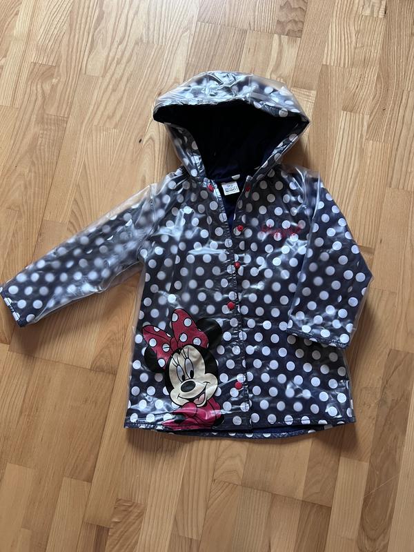 Дощовик на дівчинку з Мінні Маус. Розмір 104, підійде краще на 98. З нюансів - відлетіло 3 кнопки, дивіться на фото.