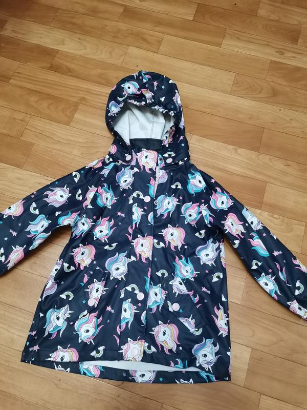 Дощовик із єдинорогом. В ідеальному стані. Заміри на фото. Зручно закривається на блискавку. Є кишеньки. Забарвлення потішить будь-яку дівчинку)