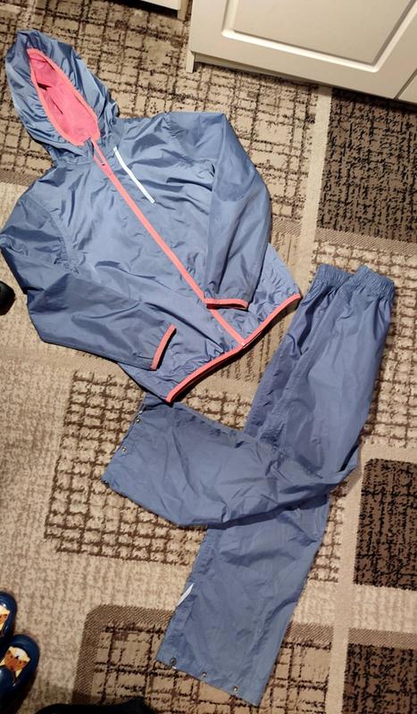 Верх: длина по спине 57, пог 44, рукав от горловины 61. Низ: длина 86, шаг 63, бедра 44, в поясе резинка 29, тянется до 42. По низу штанин есть дефект (показала на фото), в носке не заметно, можно что-то придумать. Внутри прорезиненный, швы проклеены.