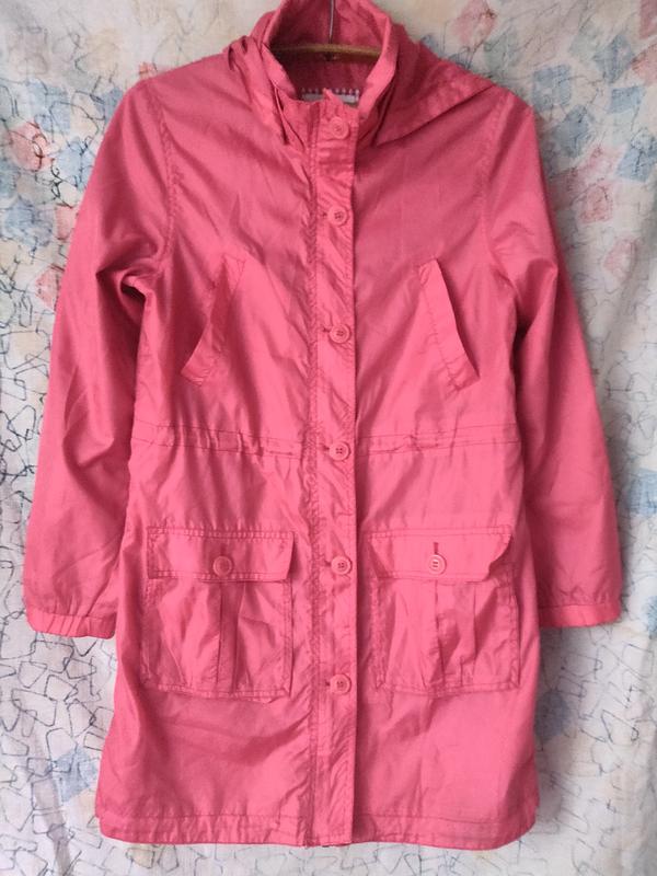 плащ яскравого лососевого кольору. на 13-14 років зріст 164см. підходе на дорослих S,М розмір. плечі-40 пог-48 пот-48пос-52 довжина -84 рукав-60. якісне пошиття слідів носіння немає.