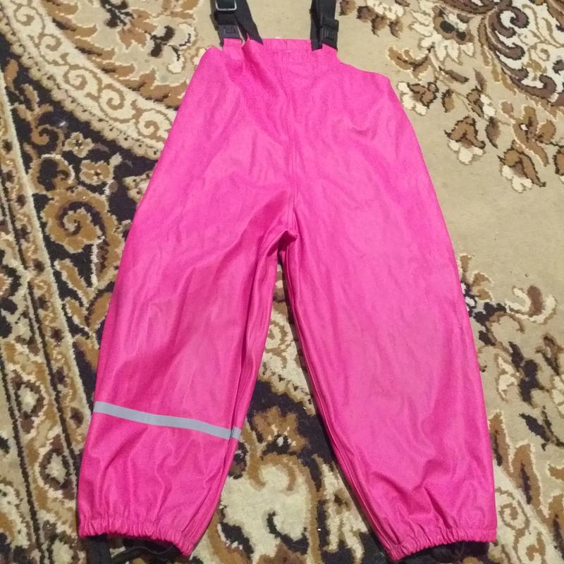 есть немного темные разводы по штанам и немного слезла резина на калоше внизу и между ногами крок 37