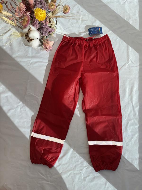Поздравляю! В наличии есть фирменные брюки из плащёвки на дождливую погоду. Идут без утеплителя, без подкладки, но плотные. Швы проклеины и прошиты дополнительно тканью. Внизу на резинке. Есть светоотражающие полоски. В поясе есть дополнительно внутренний шнурок. Размеры в наличии: 122/128 6-8 лет. Состав: 100% полиуретан. Замеры (делала собственноручно, возможна незначительное погрешность): боковой шов - 71 см шаговый - 52,5 см бедра - 51 см пояс - в спокойном состоянии - 26 см, тянется до - 39,5 см Можете оформлять безопасный союз и удивится на поште. SMART доставка также подключена. Или оплата на счет ФОП, работаю официально. Отпрашиваю всеми перевозчиками (Новая Почта, Укрпочта, Мист, Розетка) без минимальной суммы заказа