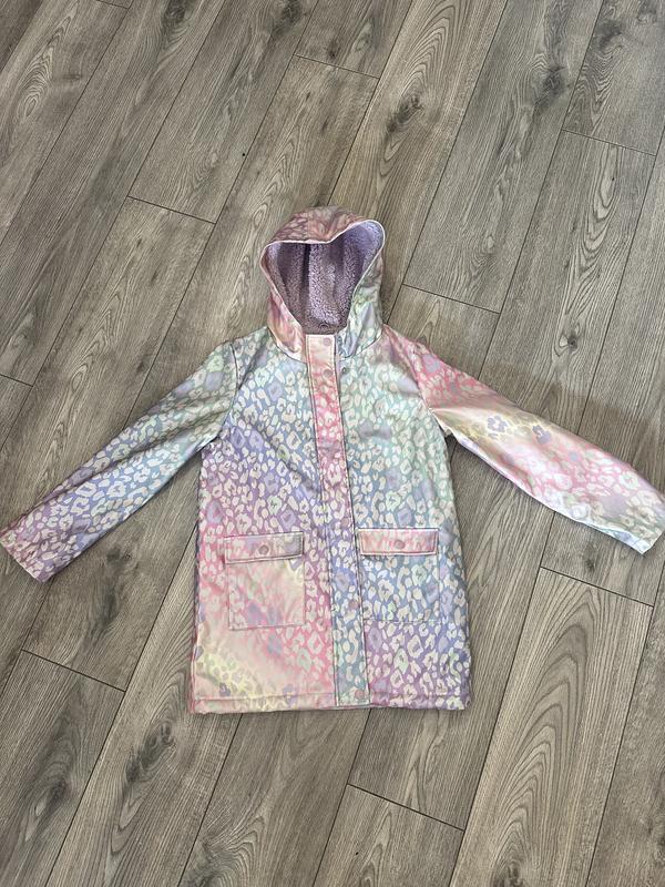 Курточка на рост 134-140, перламутровый леопардовый принт в пастельных тонах