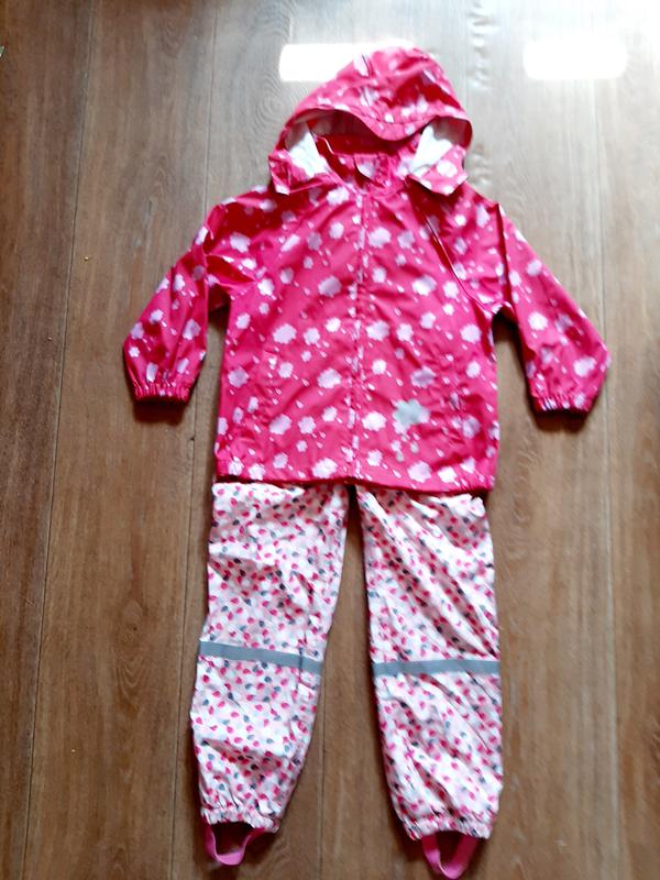 куртка р.116 отдельно 150грн непромокаемый грязепруф большемерят запаяные швы без подкладки внутри бархатистое покрытие ширина в груди 40 длина 49 рукав реглан 47 дефект. надрыв на капюшоне. на фото показала. комбинезон р.122 Topolino отдельно 160грн плащевка на подкладке 35% хлопок проклеяные швы шаговый шов 48