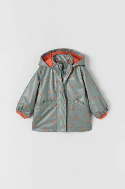 Брэндовая куртка-дощовик для дівчинки. Зроблена з якісного ветронепродувного,водонепроникного, прорезиненого матеріалу. Всередині - гладка поліестерова підкладка. Наповнювач - тонкий шар силікону. Капюшон не відстібається. Спереду застібка - блискавка і клапан на липучці, а також дві кишені. Рукава на гумці з липучками. Сезонність: весна, осінь. Склад: 100% поліестер. Розмір Довжина по спинці Ширина під руками Довжина рукава від плеча 9-12 міс 35.5 см 34 см 25 см 12-18 міс 37.5 см 35 см 27 см 18-24 міс 39.5 см 36 см 29 см 2-3 роки 42 см 37.5 см 30.5 см 3-4 роки 44.5 см 39 см, 32 см 4-5 років 47 см 40 см 34 см