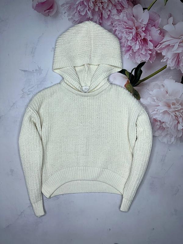 В'язаний джемпер із капюшоном Колір молоко Стан нового 🏷️Zara 13-14/164 дивіться заміри! Довжина 44-49. НОГ 54. Рукав від шиї 70