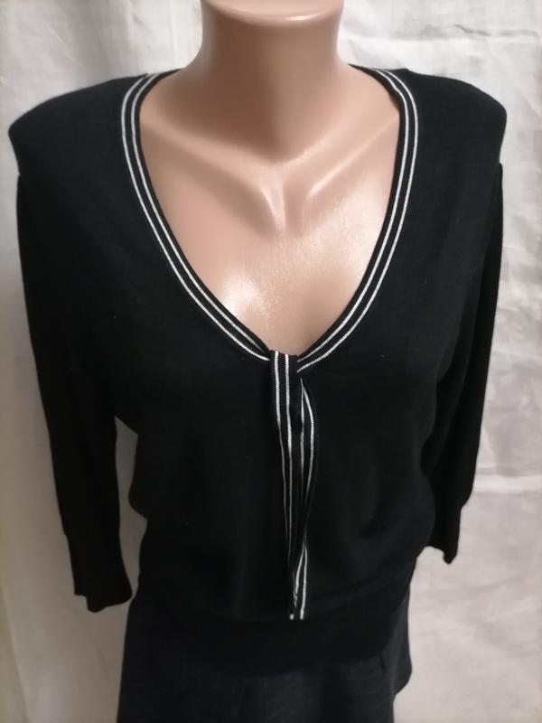 Добрий день. Рада вітати Вас на своїй сторінці. Всі речі в хорошому стані. красива коротка кофточка, рукав 3/4, горловина межує з чорно—білої торочкою та, на худеньку дівчину., Можна в школу плече — 12 см рукав -43 см довжина — 59 см ПОГ — 50 см ширина резинки — 33 см Купляєте те що на фото, без претензій. Перед покупкою все добре заміряйте, обміну та повернення немає. Доставка НП і УП після оплати на картку,