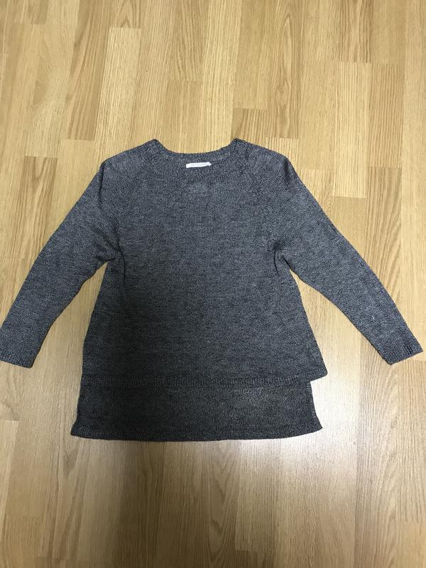 Стан ідеальний Колір сірий меланж Заміри довжина рукава від горла 55 см ширина від пройми до пройми 42 см Загальна довжина 46/53 см Склад хлопок + поліестр ( немає бірочки зрізала