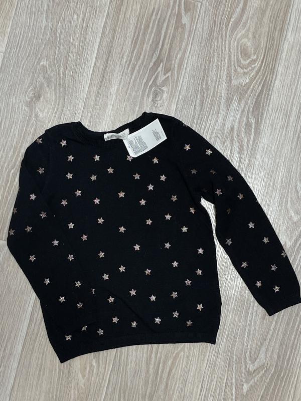 Джемпер тонкого в'язання чорного кольору. Принт зірочки з глітером Новий 🏷️H&M 4-6 лет/110-116 Довжина 42. Пог 33. Рукав 41