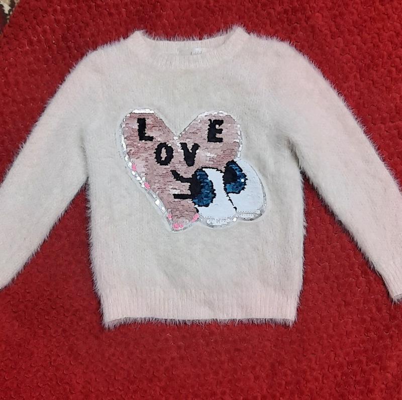 : Джемпер із серцем із паєток для дівчинки. Теплий джемпер із ворсистої пряжі для дівчинки. Декорований серцем із паєток і принтом love, принт двосторонній. Дуже теплий і комфортний для Вашої дівчинки.
