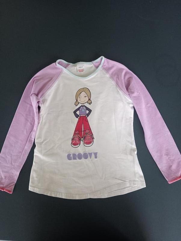 Джемпер трикотажний, бавовна 100% Фарба на малюнку ле лущиться, за праскою не тягнеться З мінімальними слідами використання Бренд Next На 7 років, зріст 122 см Ширина 32 см Довжина рукава від горловини 46 см Довжина по спинці 43 см