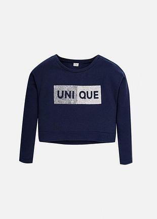 Джемпер для дівчинки Mayoral синього кольору, принт білий сяючий напис 60% бавовна/40% поліестер