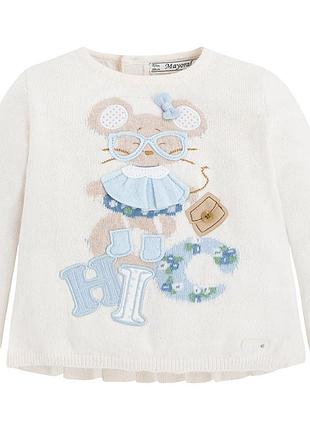 Джемпер для дівчинки Mayoral молочного кольору, принт мишка 60% бавовна/30% поліамід/10% ангора