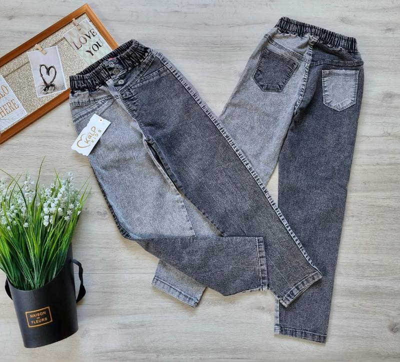 В НАЯВНОСТІ!!! Джинси МОМ, в поясі широка резинка, застібається на гудзики є кишені 10-11(4 шт)-довжина 79,крок 54,пояс 24 11-12(5 шт)-довжина 83,крок 58,пояс 24 12-13(4 шт)-довжина 85,крок 59,пояс 25 13-14(1 шт)-довжина 89,крок 64,пояс 25 14-15(5 шт)-довжина 92,крок 66,пояс 25 +-2 см