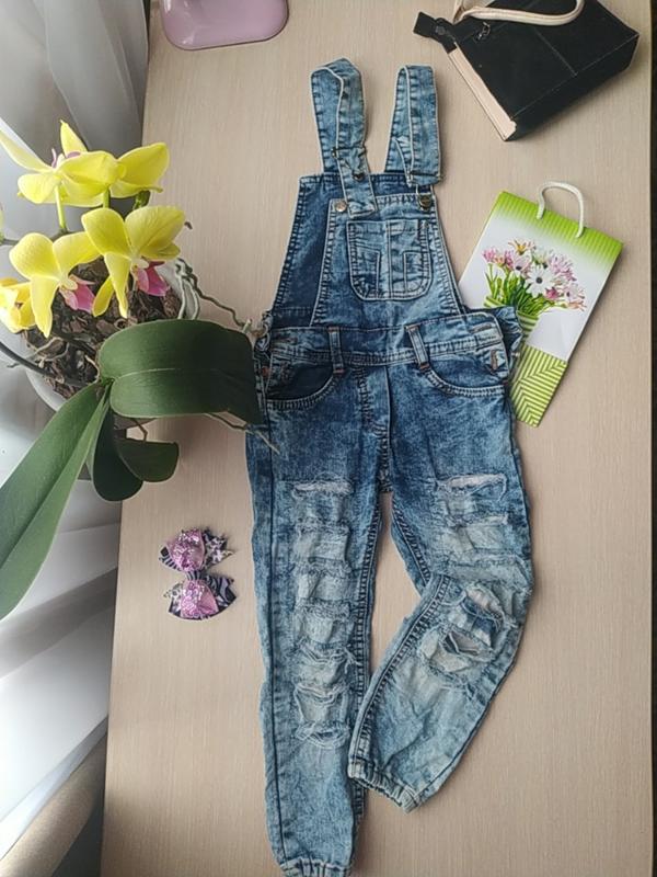 Цей комбез з легкого джинсу обовязково повинен бути у Вашої принцеси! Тканина легка, 5 карманів, хоча джинс зі "рванками", але вони з піднизу повністю зашиті тканиною в тон. Ніякий вітерець Вашій дівчинці не страшний)