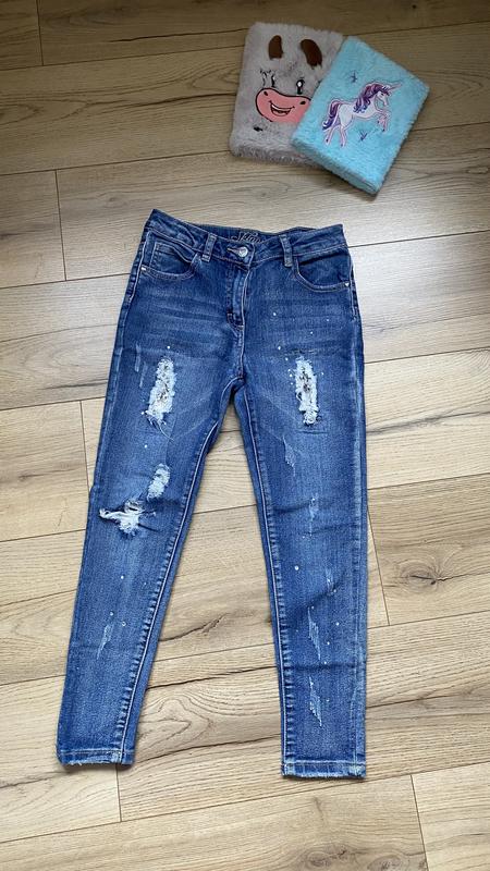Джинсы. В хорошем состоянии На 9-10 лет, рост 135-140 см Замеры: Полуобхват пояса 32 см Полуобхват бёдер 36 см Длина 80/58 см Тянутся