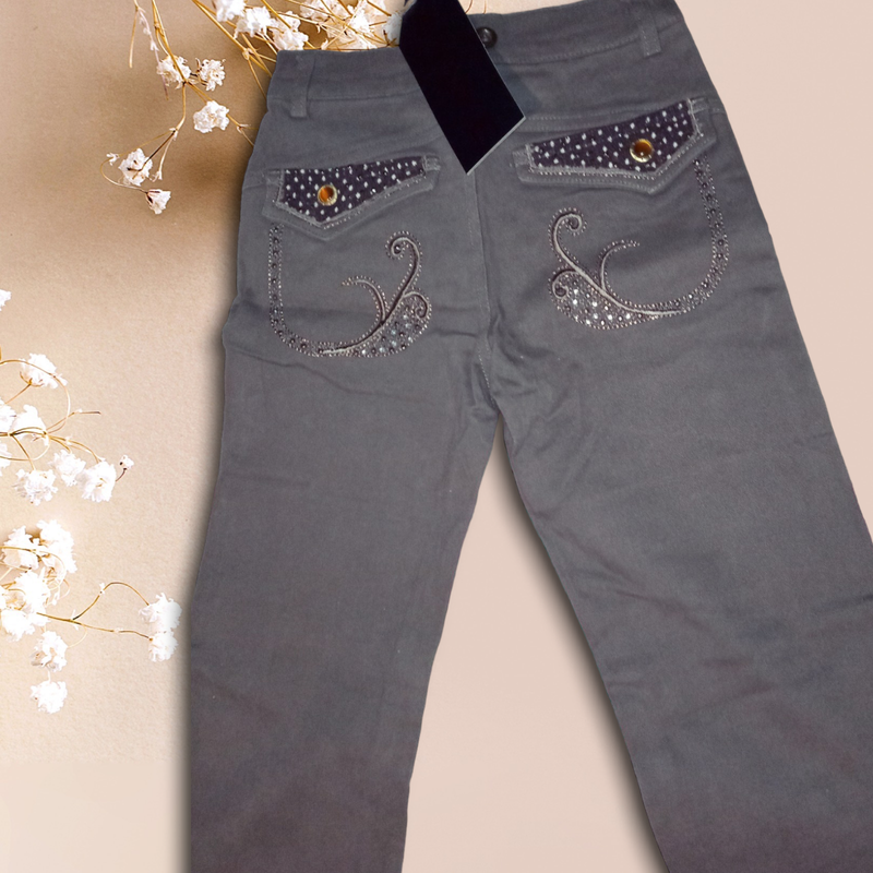 Детские девчачьи брючки цвета милитари с камушками и вышивкой. Имеют такие размеры Размер 21 Талия-60 Бедра- 70 Длина 86 Размер 24 Талия -64 Бедра 78 Длина 94 Внизу брючки чуточку расширенные, не прямые.