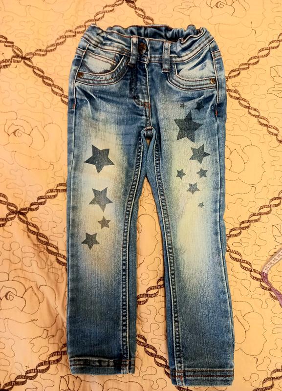 Джинсы на девочку 4-5 рочков Стан идеален,без дефектов, длина 60,пояс 23,ие регулятор-резинка, в бедре 31