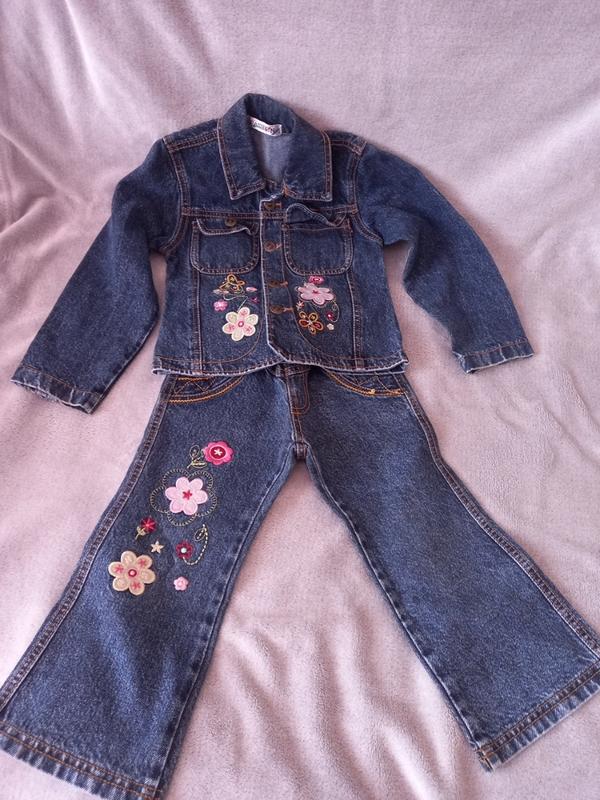 Дитячий джинсовий костюм гарної якості з вишивкою. Довжина штанів 54 см, пояс на резинці 20 см ( в розтягнутому вигляді 30 см). Куртка довжина по спині 40 см, плечі 26 см, рукав 38 см. Відправка Новою або Укрпоштою, оплата на карту.
